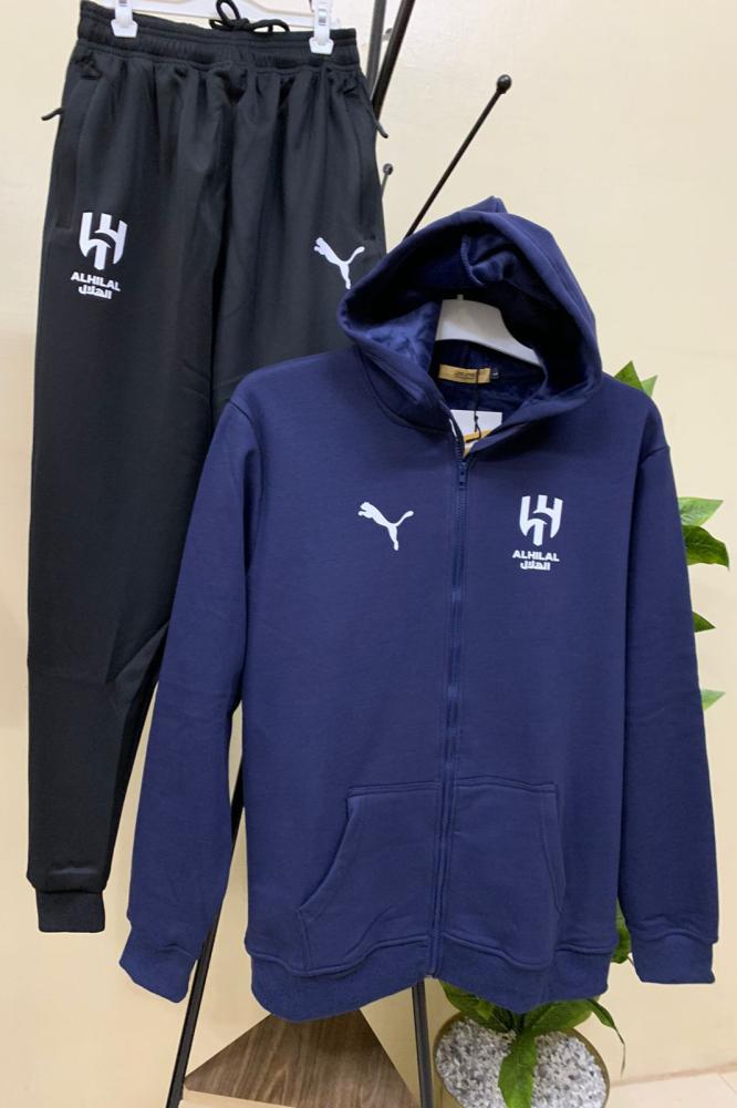 طقم بلوفر شتوي بشريط سحاب لون كحلي مع بنطلون طويل
