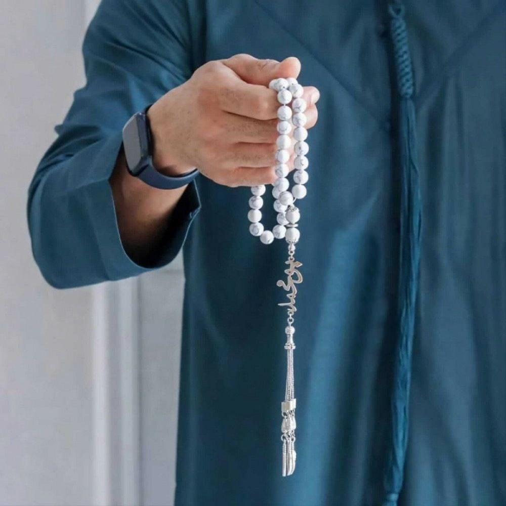 سبحة رجالي بالاسم احجار الماربل ابيض